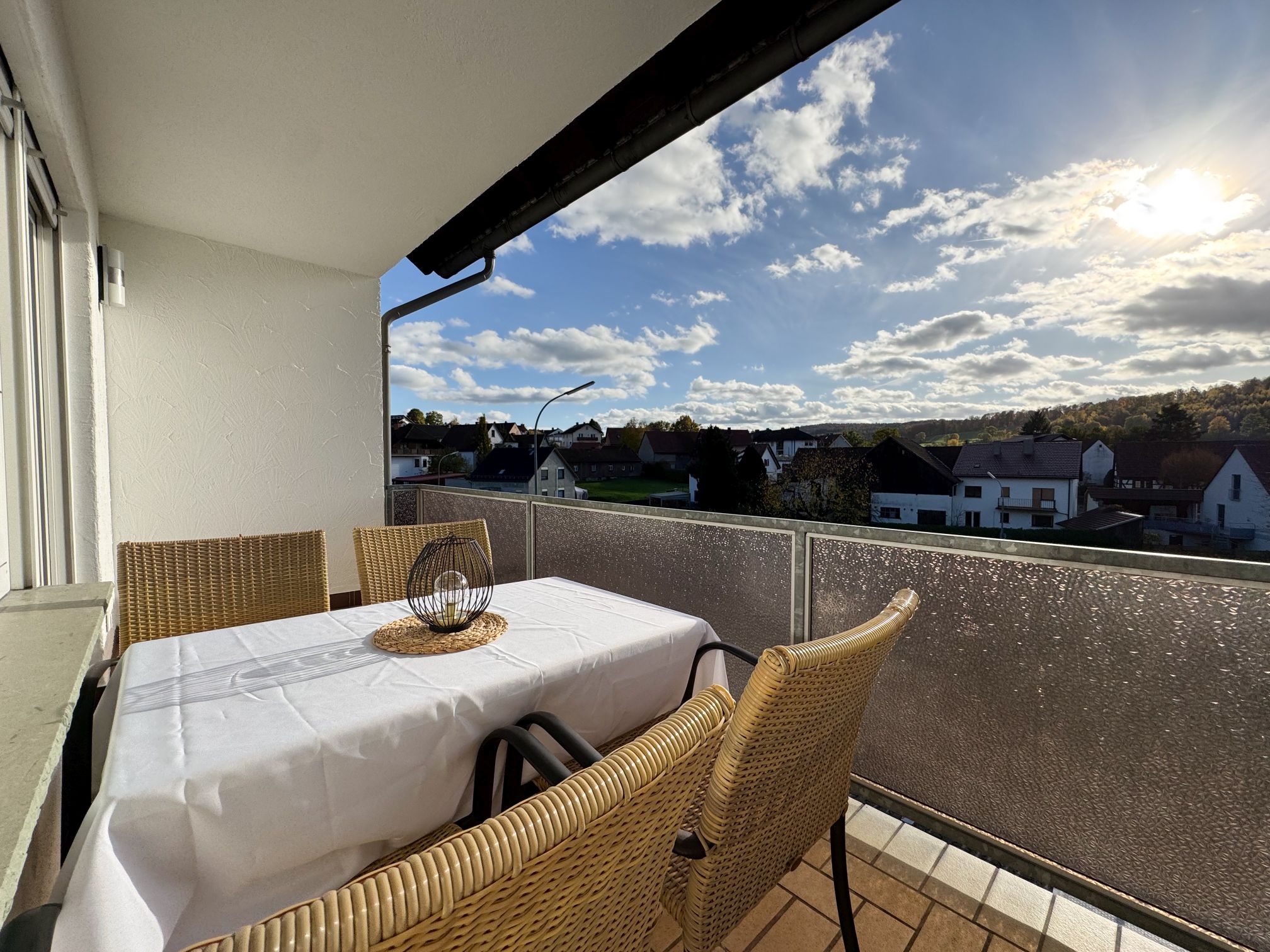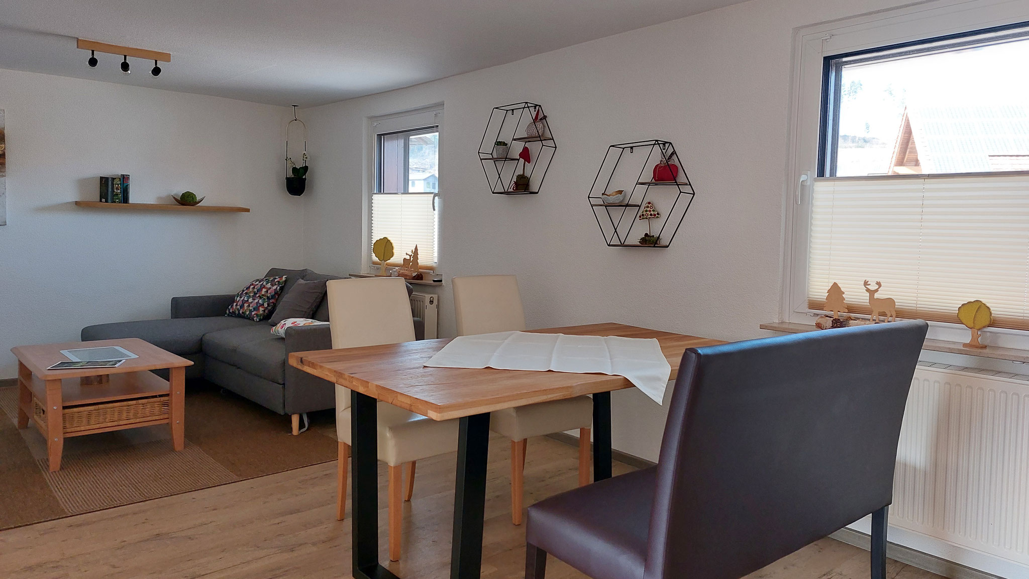 Unsere neu renovierte Ferienwohnung befindet sich mit 86m² Wohnfläche im Dachgeschoss. Sie ist liebevoll eingerichtet und für 3 Personen mit Küche, 2 Schlafzimmern, Bad, Wohnzimmer und schönem Balkon ausgestattet. Wlan, Parkplatz und Abstellmöglichkeiten für Fahr- oder Motorräder sind vorhanden. Hund willkommen!